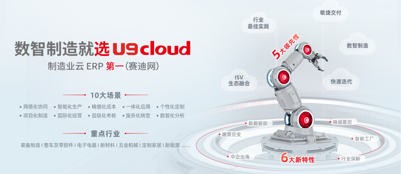 用友U9 cloud早已不是简单的 "ERP 系统"。作为聚焦制造业17年的制造企业管理平台,它通过持续深耕行业场景、融合AI技术与强化全球化能力,构建了覆盖研发、生产、供应链、财务、全球化管理的全流程数智化平台,成为中